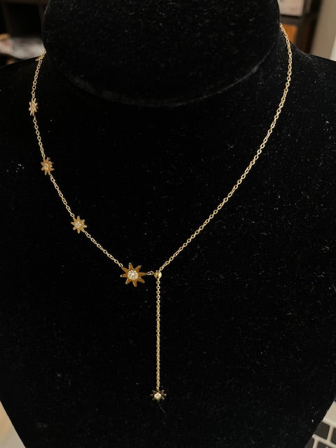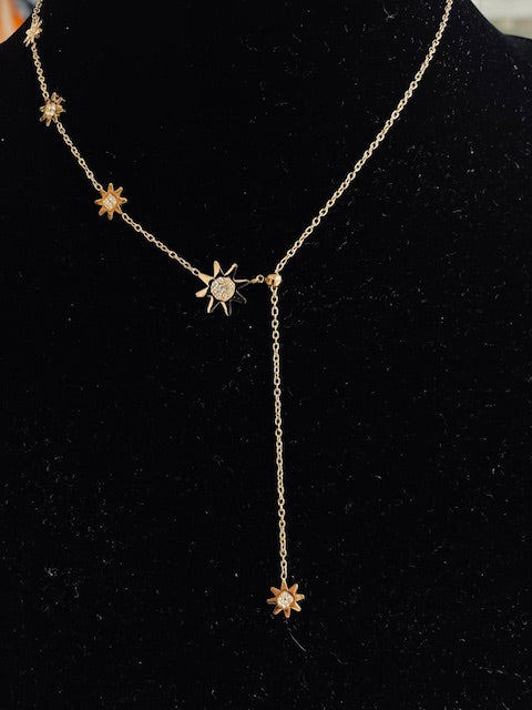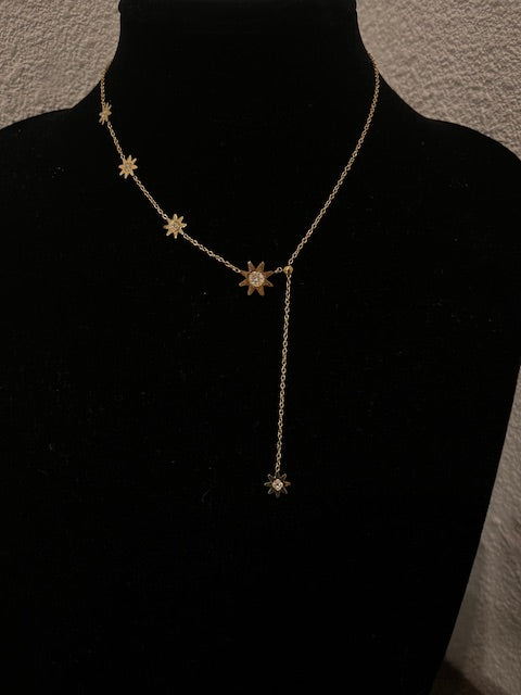 Sublimez votre décolleté avec notre collier éclat stellaire, une création délicate qui mêle finesse et brillance. Sa chaîne dorée est ornée de charmants motifs étoilés, chacun illuminé par une pierre scintillante pour refléter la lumière au moindre mouvement.