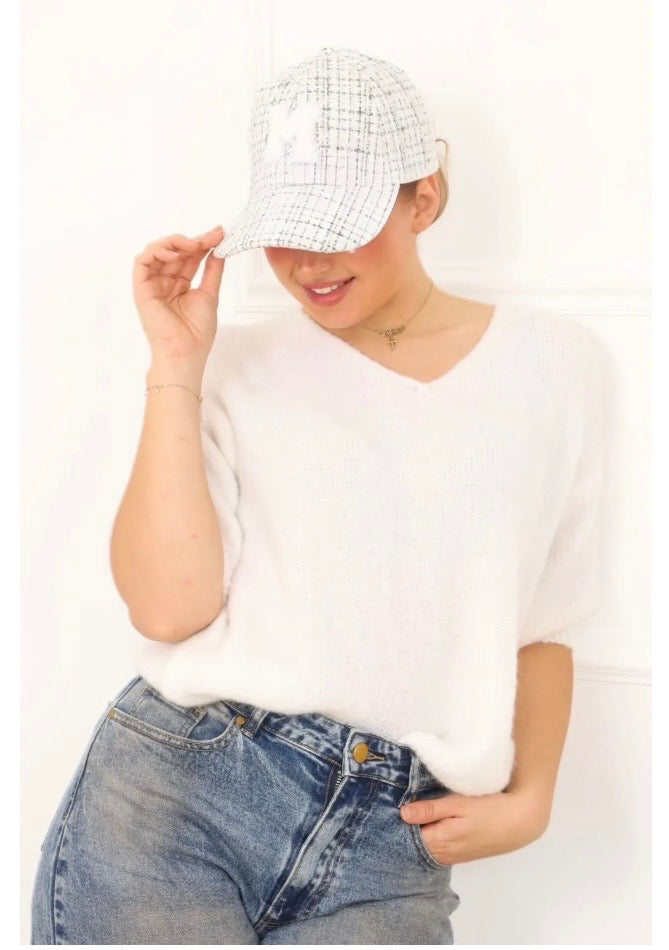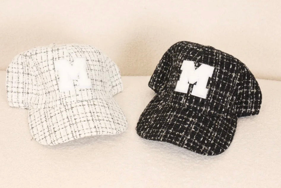 Ajoute une touche chic et décontractée à tes tenues avec notre casquette en tweed à motif "M".