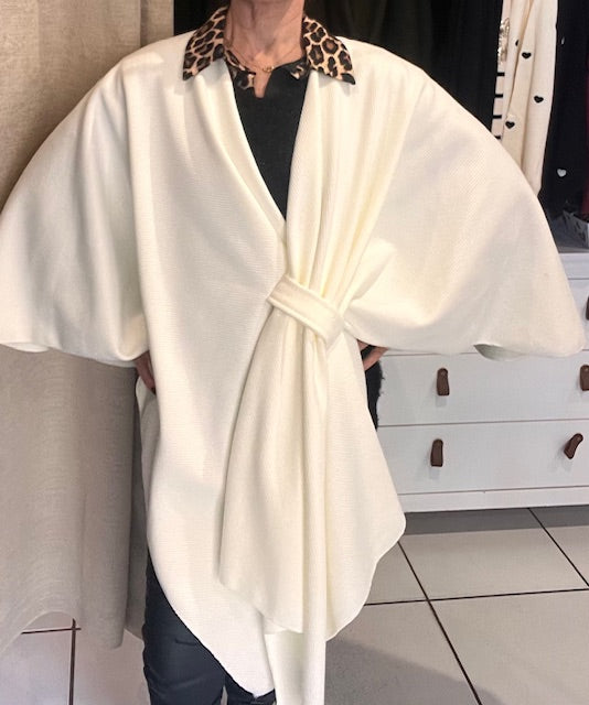 Ajoutez une touche de sophistication à votre tenue avec cette cape écru au drapé raffiné.