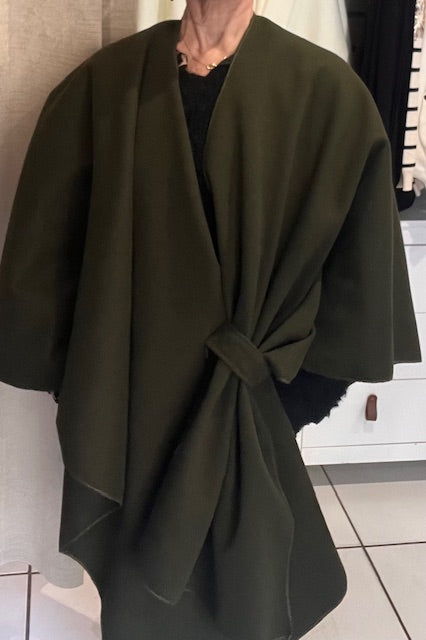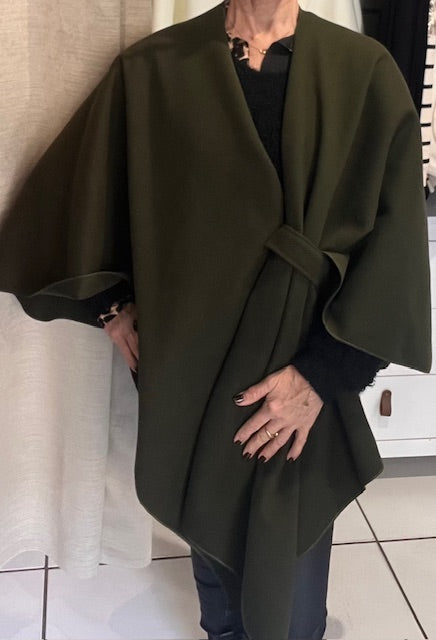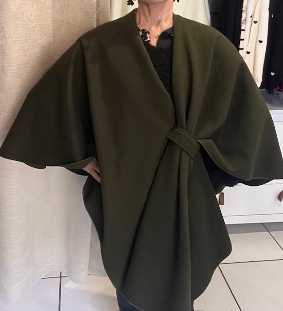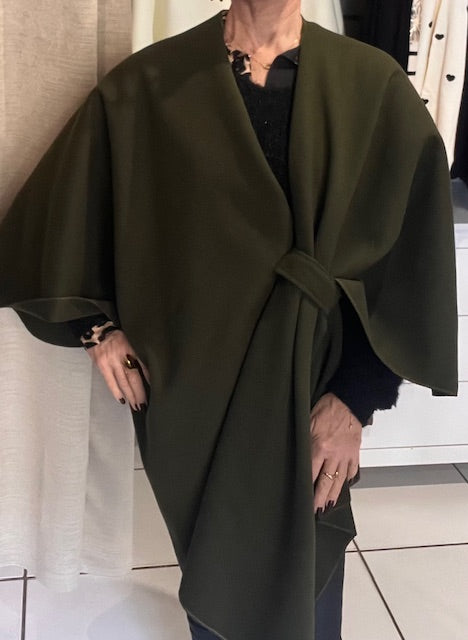 Ajoutez une touche de sophistication à votre tenue avec cette cape kaki au drapé raffiné.