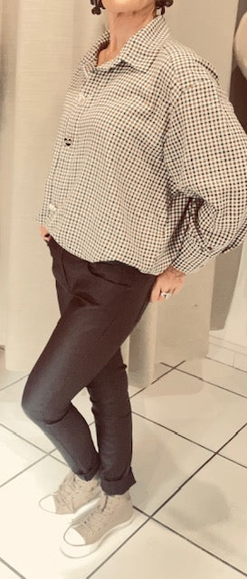 Associez-le à un pull oversize clair ou à une chemise fluide pour créer un contraste élégant.
